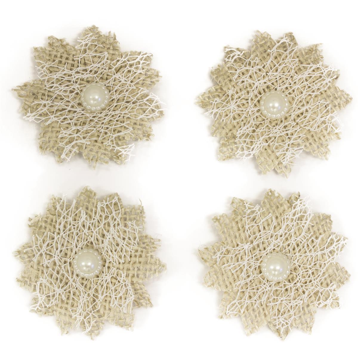 Søde stofblomster med perler. Velegnet til bryllup, bordpynt, fødselsdage, barnedåb, en romantiske aften og mange andre hyggelige lejeligheder. Blomsterne er lavet af papir og er selvklæbende, så du kan fastgøre dem alle steder. Pakken indeholder 4 stk. og er ca. 3cm i diameter.