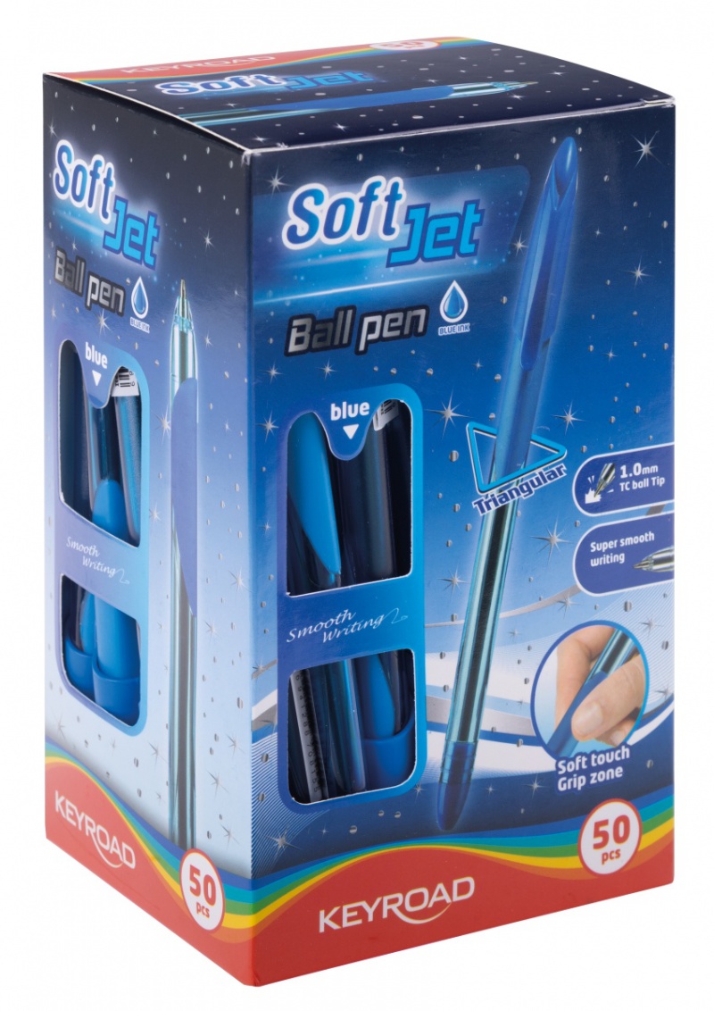 Kuglepen trekantet keyroad soft 1 mm blå - 50 stk