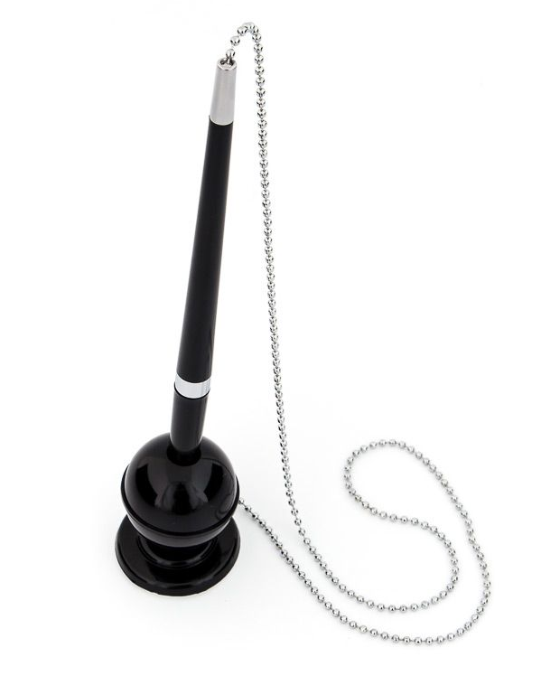 Oplev vores elegante kuglepen med kæde og holder, ideelt designet til offentlige steder som kontorer, skranker, receptionsområder og sekretariater. Den roterende holder-kugle sikre god funktionalitet. Den selvklæbende stabile base garanterer, at kuglepennen forbliver på plads på jævne overflader. Optimer dit arbejdsområde med denne praktiske løsning, der kombinerer funktionalitet med et tidløst design. • Antal: 1 stk• Farve: blå • Stregtykkelse: 1 mm