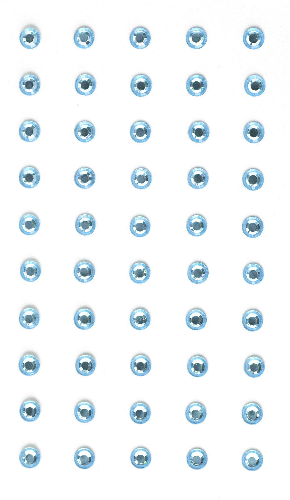 Smukke lyseblå rhinsten med facetslebet overflade og flad selvklæbende bagside. Perfekte til invitationskort, gavekort, æsker og utallige andre kreative dekorationer. 50 stk. pr. pakke.