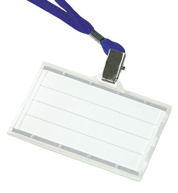 Navneskilte med blå snor transparent 90x56 mm - 5 stk