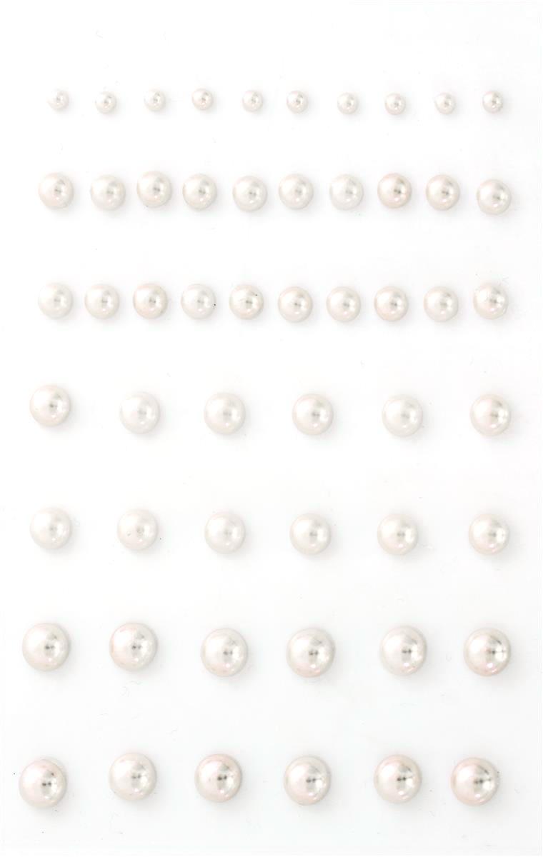 Creme perler - mix størrelser - selvklæbende bagside 3-7mm, 54 stk.