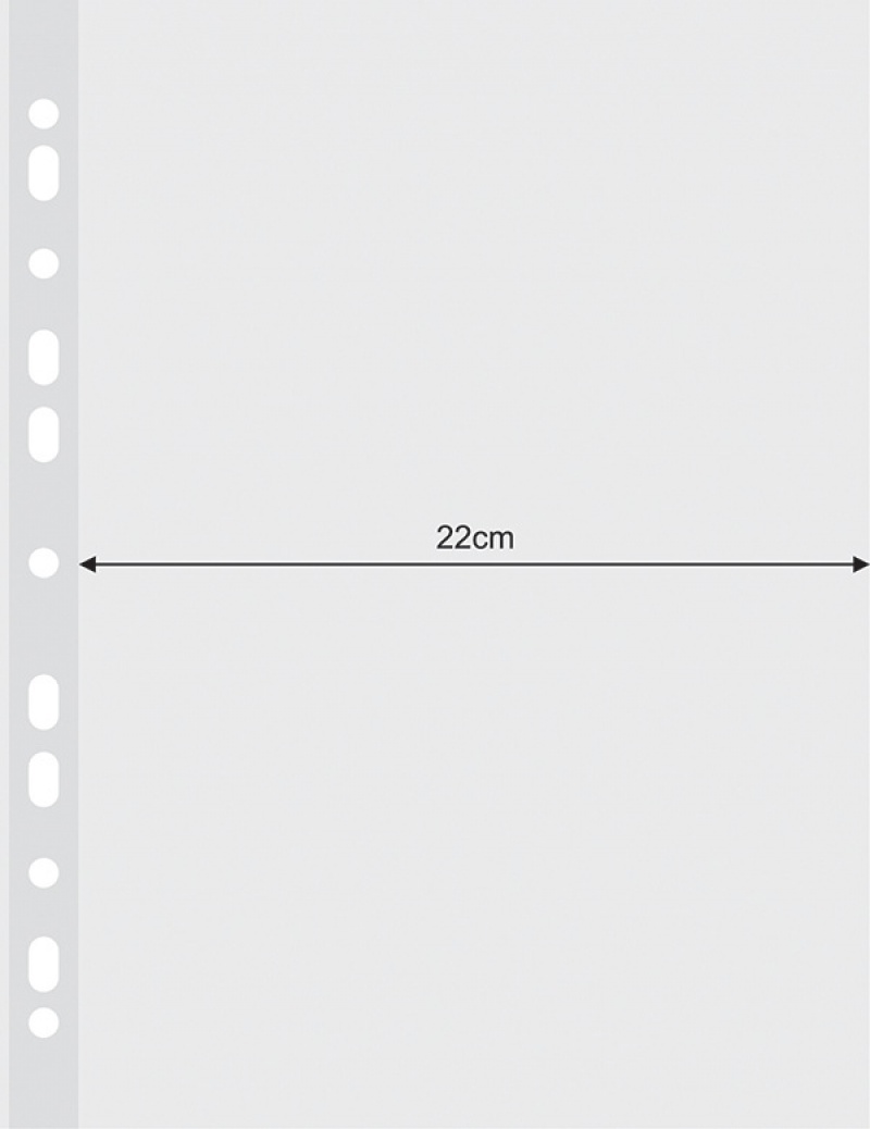 Vores ekstra brede plastlommer på 22 cm gør det muligt at opbevare op til 120 ark A4 papir i hver eneste lomme. Perfekt når du ønsker at organisere større mængder dokumenter på et sted. Åbningen i toppen gør det nemt at indsætte og fjerne dokumenter hurtigt og effektivt. Vores bredformat plastiklommer i A4 størrelse er fremstillet af slidstærk, miljøvenlig polypropylenfolie med en tykkelse på 50 mikron/my. Dette sikrer, at dine dokumenter forbliver beskyttede og i fremragende stand gennem en lang periode. A4 plastlommer i høj kvalitet er det ideelle valg til kontoret, skolen eller hjemmet, når man har behov for effektiv opbevaring af rapporter, præsentationer, regneark og billeder, sikrer de, at dine dokumenter forbliver beskyttede og organiserede. Med 25 styks brede plastiklommer pr. pakke, har du masser af plads til at bevare dine vigtige materialer. Invester i kvalitet og funktionalitet.• Velegnet til A4-dokumenter• Åbning i toppen• Materiale: Miljøvenlig polypropylenfolie• Forstærket kant• 11 huller• Ikke-reflekterende• Kapacitet: Op til 120 ark papir (A4)• Antal i pakken: 25 stk
