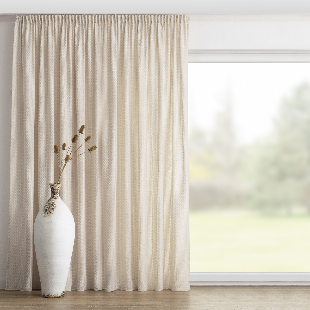 Gardin med rynkebånd ✔ Skræddersyet - klar til montering hos dig✔ Direkte fra systuen - uden fordyrende mellemled✔ Perfekt fald - med indsyet tyngdebånd og ekstra tyngde i hjørner ved søm✔ Kvalitetstekstiler – hovedsaglig fra Portugal✔ EU produceret - vores egen systue Mål og bestilling Længden måles fra undersiden af gardinstangen, og det er bredden før rynkning, der skal angives. Du kan vælge at bruge de nederste "lommer" i rynkebåndet til gardinkrogene, så gardinet bliver løftet ca. 15 mm. Da skal du tillægge 15 mm i længden. Bredde og rynkning En gardinbredde på 130 cm formindskes til 65-100 cm efter rynkning. Montering og anvendelse Bruges til gardinskinne og små gardinkroge, som ikke følger med. Da rynkebåndet er åben i hver side (løbegang), kan gardinet dog også bruges til en gardinstang uden glidere. Bredere gardiner Hvis gardinet er bredere end 130 cm, kan der være behov for 2 eller flere stofbaner. Se stofbredde under Valgt stof. Sammensyningen er kun lidt synlig. Mønster-tilpasning Ved gardiner bredere end 130 cm tager vi hensyn til mønsteret på stoffer med striber, firkanter og små mønstre. Ved større mønstre undgås unødig stofspild, og mønstret er derfor ikke altid tilpasset i sammensyningen. Forhør gerne om eventuel merpris. Kortere længder Ønsker du et gardin kortere end 100 cm, noter dette ved Meddelelse til os. Prisen er dog den samme som for 100 cm. Tolerancer Der kan forekomme måleafvigelse på +/- 2 cm. Bestilling pr. vindue 1 stk = 1 fag. Til ét vindue bestilles der derfor 2 stk. Mønsterets placering Mønsterets størrelse og højdetilpasning på billedet er vejledende. Gardiner fremstillet af mønstrede tekstiler vil ikke altid have præcis samme mønsterplacering. Afslutning og tyngdebånd Gardiner afsluttes forneden med bundsøm og indsyede tyngdebånd, dog afsluttes følgende kollektioner alene med tyngdebånd som skaber de mest jævne folder: Alara Premium Vintage (145-17, 139-01, 139-02) Dimout 300 cm Blackout Soft Blackout Double Blackout FR Premium Balance Crema Imperia Premium Quadro (143-90, 143-91, 143-92, 143-93, 144-99) Romantica (128-77, 128-88, 142-90, 181-15, 174-93, 184-41, 128-09, 128-10, 181-16, 181-17) Sensuale Premium Scotti Delicate Premium Harmony Intenso Premium 144-15 Edinburgh 144-95 Vibes Natural Touch Secret Garden (145-06, 145-07) Ved lange gardiner kan du med fordel bruge denne gardin-fører stang