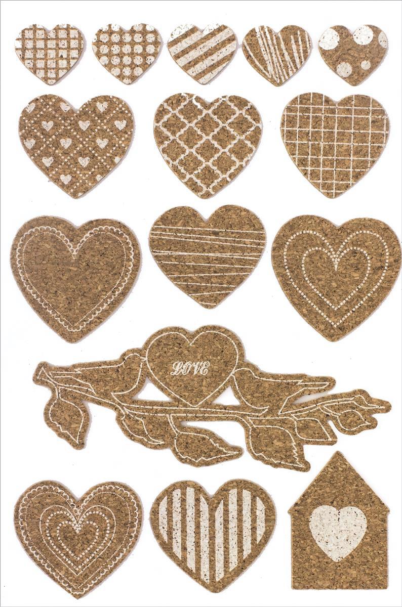 Selvklæbende kork hjerter 15 stk.