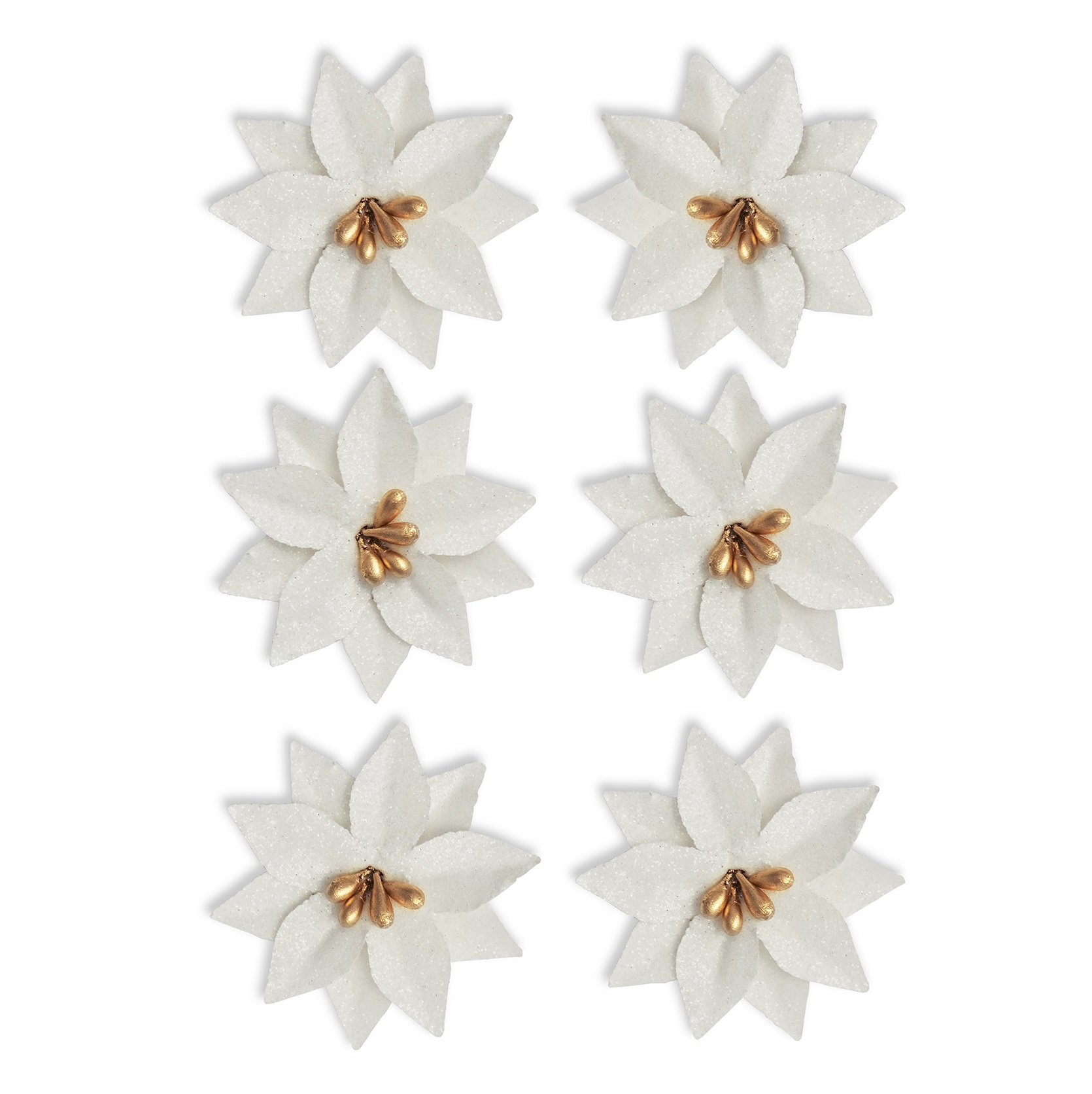 Hvide julestjerner med glitter selvklæbende 3cm, 6 stk.