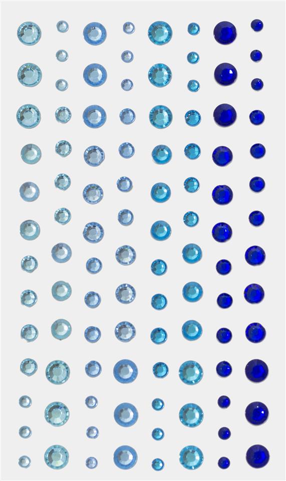 Mix blå rhinsten m. selvklæbende bagside 3-6mm, 104 stk.