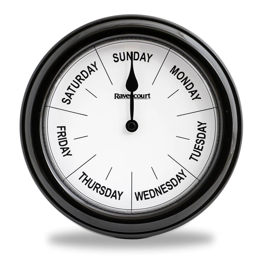 Ugedags-ur – hjælp til struktur og tryghed i hverdagen Et enkelt blik – og du ved hvilken dag det er Dette ugedags-ur er udviklet med fokus på mennesker med demens, hukommelsesvanskeligheder eller kognitive udfordringer. Uret viser udelukkende ugens dage og er derfor ideelt til personer, som tidligere har været vant til almindelige analoge ure, men nu har brug for en mere overskuelig løsning. Uret er udstyret med en tydelig, højkontrast urskive, hvor en enkelt viser roterer langsomt og peger på den aktuelle ugedag. Den simple visning reducerer forvirring og giver en tryg følelse af struktur – især for personer, der kan miste tidsfornemmelsen. Produktets fordele og funktioner: Viser kun ugedagene – intet urværk eller tal Skaber overblik og tryghed i hverdagen Letlæselig højkontrast-skive Engelsk tekst på ugedagene Diskret og stilfuldt design, der passer i både hjem og institution Quartz-mekanisme (batteridrevet – batteri medfølger ikke) Måler: Ø ca. 23 cm (standard vægur-størrelse) Anbefales til: Ældre med demens eller begyndende hukommelsesproblemer Børn og unge med særlige behov Institutioner, bosteder og plejehjem Pårørende, der ønsker at støtte struktur og selvstændighed OBS: Ugedagene står med engelsk tekst (Monday, Tuesday osv.).