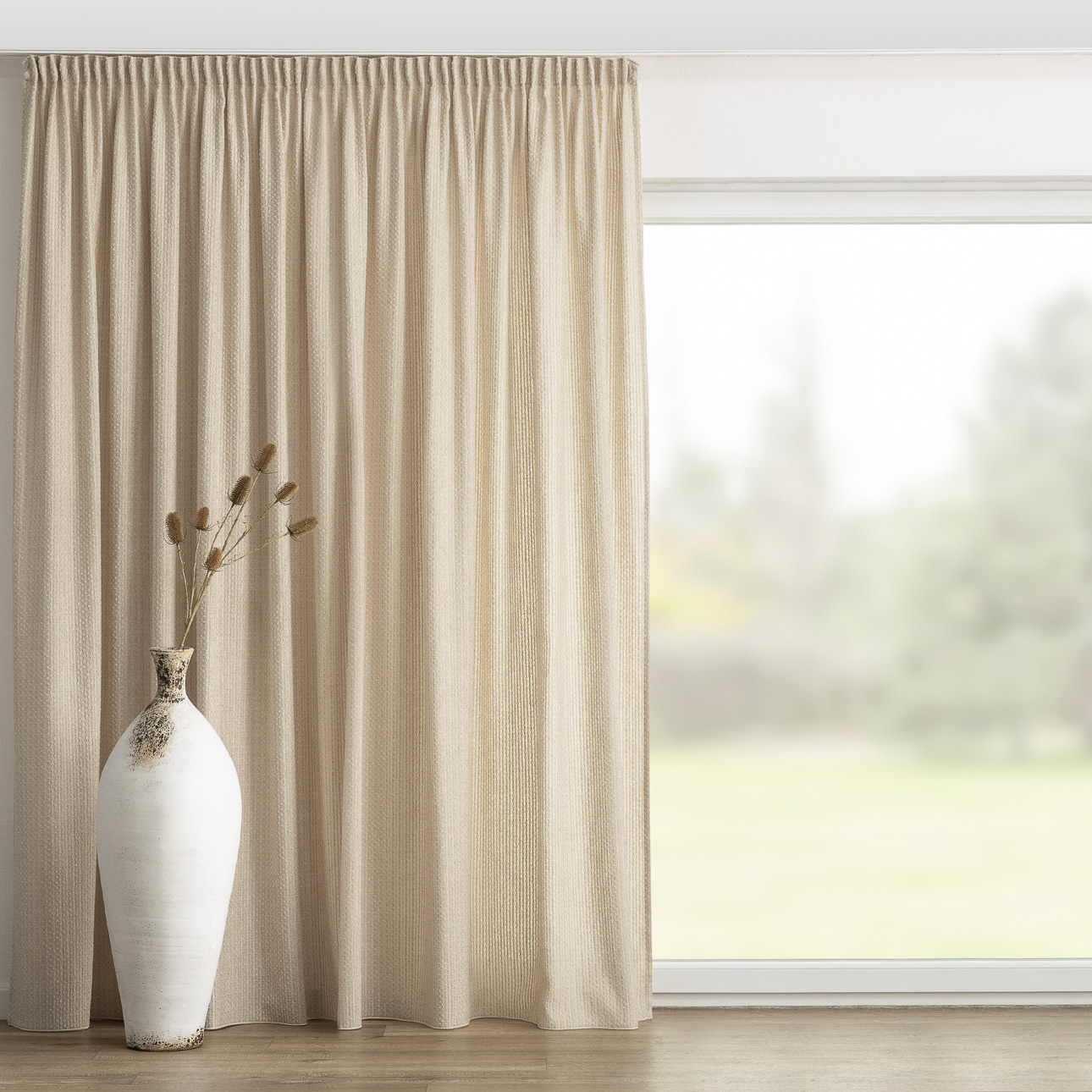 Gardin med rynkebånd ✔ Skræddersyet - klar til montering hos dig✔ Direkte fra systuen - uden fordyrende mellemled✔ Perfekt fald - med indsyet tyngdebånd og ekstra tyngde i hjørner ved søm✔ Kvalitetstekstiler – hovedsaglig fra Portugal✔ EU produceret - vores egen systue Mål og bestilling Længden måles fra undersiden af gardinstangen, og det er bredden før rynkning, der skal angives. Du kan vælge at bruge de nederste "lommer" i rynkebåndet til gardinkrogene, så gardinet bliver løftet ca. 15 mm. Da skal du tillægge 15 mm i længden. Bredde og rynkning En gardinbredde på 130 cm formindskes til 65-100 cm efter rynkning. Montering og anvendelse Bruges til gardinskinne og små gardinkroge, som ikke følger med. Da rynkebåndet er åben i hver side (løbegang), kan gardinet dog også bruges til en gardinstang uden glidere. Bredere gardiner Hvis gardinet er bredere end 130 cm, kan der være behov for 2 eller flere stofbaner. Se stofbredde under Valgt stof. Sammensyningen er kun lidt synlig. Mønster-tilpasning Ved gardiner bredere end 130 cm tager vi hensyn til mønsteret på stoffer med striber, firkanter og små mønstre. Ved større mønstre undgås unødig stofspild, og mønstret er derfor ikke altid tilpasset i sammensyningen. Forhør gerne om eventuel merpris. Kortere længder Ønsker du et gardin kortere end 100 cm, noter dette ved Meddelelse til os. Prisen er dog den samme som for 100 cm. Tolerancer Der kan forekomme måleafvigelse på +/- 2 cm. Bestilling pr. vindue 1 stk = 1 fag. Til ét vindue bestilles der derfor 2 stk. Mønsterets placering Mønsterets størrelse og højdetilpasning på billedet er vejledende. Gardiner fremstillet af mønstrede tekstiler vil ikke altid have præcis samme mønsterplacering. Afslutning og tyngdebånd Gardiner afsluttes forneden med bundsøm og indsyede tyngdebånd, dog afsluttes følgende kollektioner alene med tyngdebånd som skaber de mest jævne folder: Alara Premium Vintage (145-17, 139-01, 139-02) Dimout 300 cm Blackout Soft Blackout Double Blackout FR Premium Balance Crema Imperia Premium Quadro (143-90, 143-91, 143-92, 143-93, 144-99) Romantica (128-77, 128-88, 142-90, 181-15, 174-93, 184-41, 128-09, 128-10, 181-16, 181-17) Sensuale Premium Scotti Delicate Premium Harmony Intenso Premium 144-15 Edinburgh 144-95 Vibes Natural Touch Secret Garden (145-06, 145-07) Ved lange gardiner kan du med fordel bruge denne gardin-fører stang