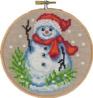 Juleophæng snemand med ramme, Ø 13cm, stof hør nature 10 tråde pr. cm.