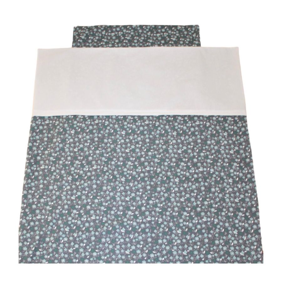 Juniorsengetøj, 100% OEKO-TEX certificeret bomuld - Grå med mint blomster