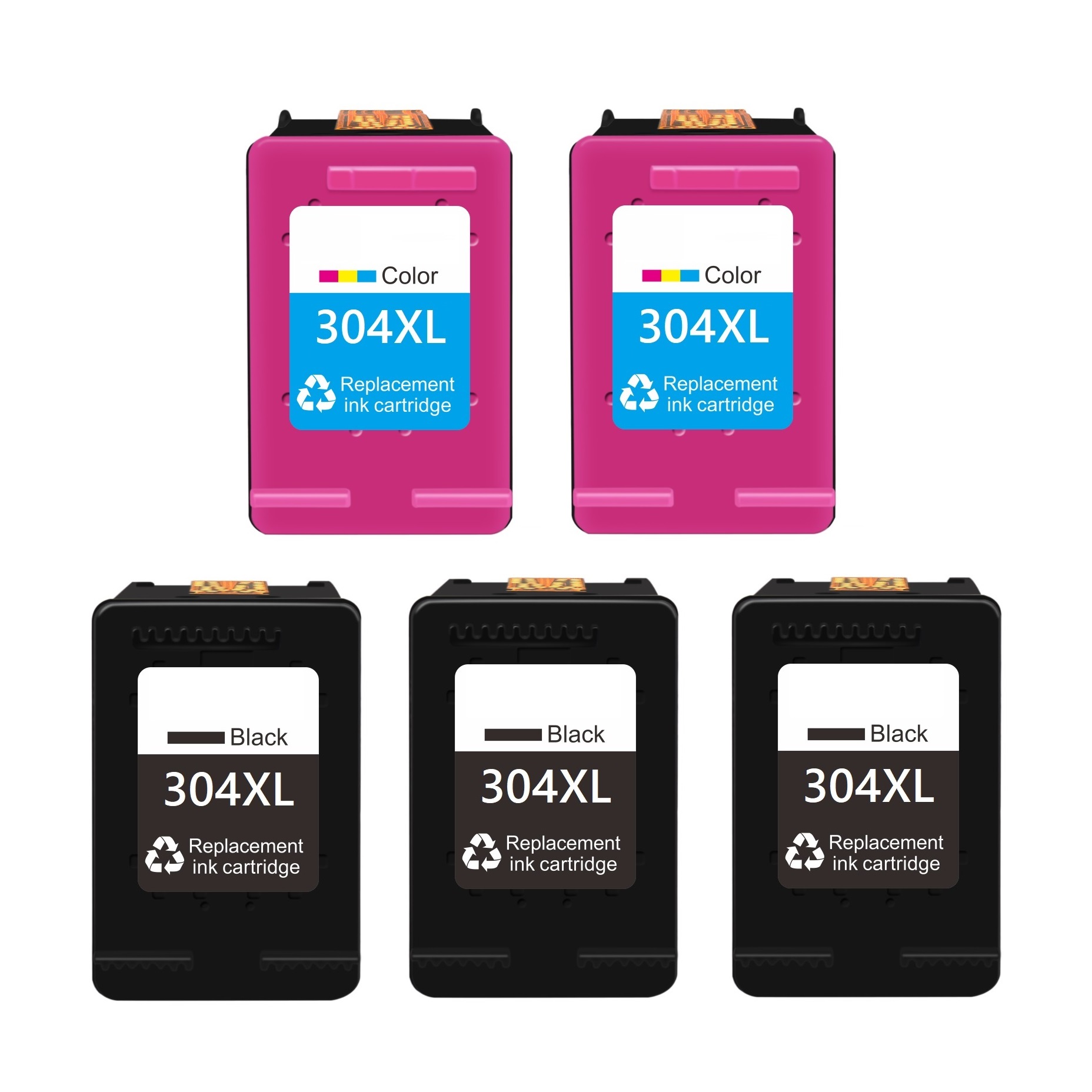 HP 304 XL 3xSort + 2xFarve blækpatron 96ml kompatibel multipakke