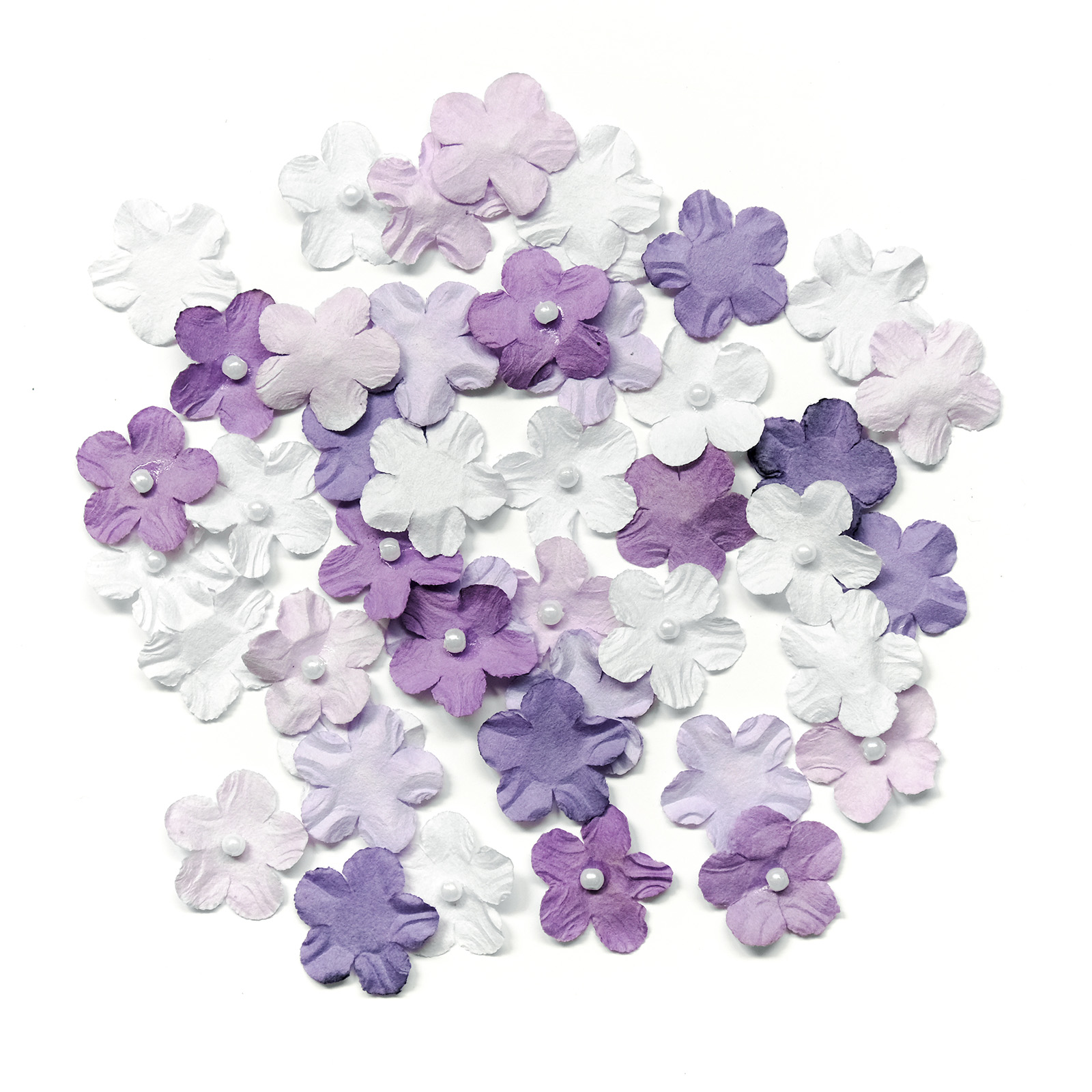 Dekoration papirblomster m. perler - lavendel 50 stk