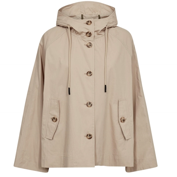 Sheena Short Jakken fra Mos Mosh er en kort jakke med et moderne og afslappet udtryk. Den har hætte med justerbare snøre, knaplukning og sideknapper, som giver en let og komfortabel pasform. Splitdetaljen i ryggen understreger den A-formede silhuet. En alsidig jakke i farven Feather Gray, som er nem at style med jeans og en let strik til hverdagsbrug.