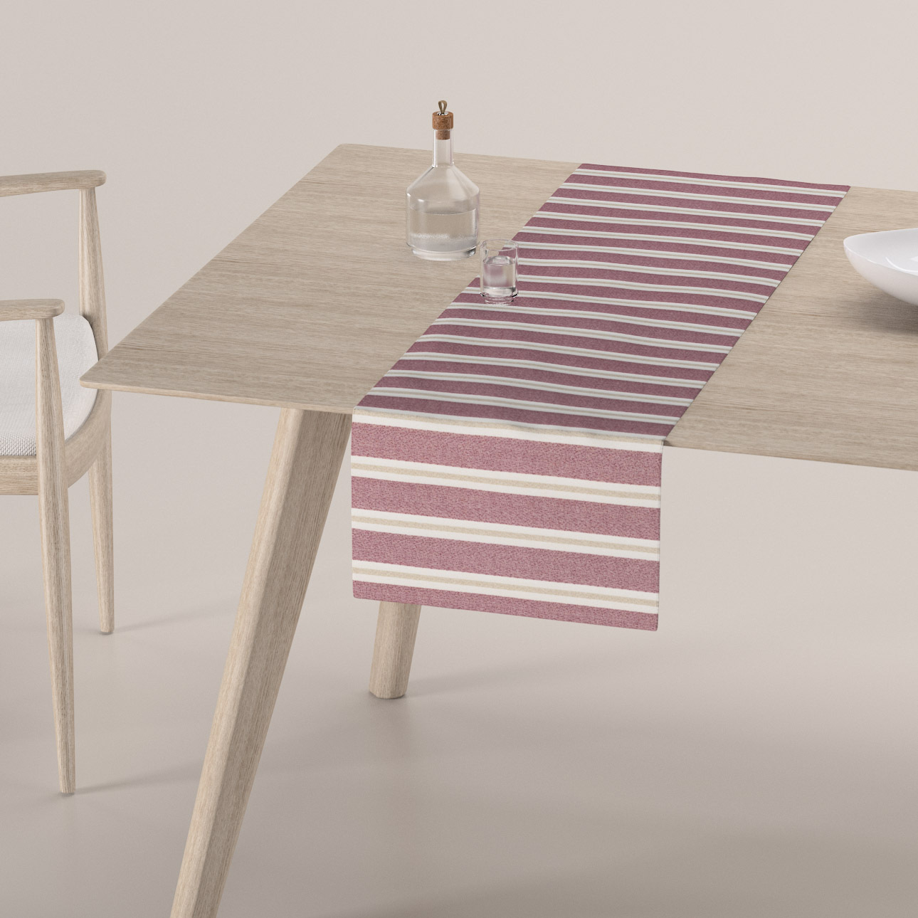 Rektangulær bordløber med bred søm. Brug den som Dinner for 2, hvor du lægger den på tværs af bordet eller som alm. bordløber langs med bordet. Hvis du ønsker et andet mål end 40x130cm, kan du bestille her. Da stofbanerne typisk er 140cm brede, vil bordløbere længere end 130cm blive klippet på langs af stofbanerne, så mønsteret stoffer vil være på langs i stedet for på tværs. Billedet ovenfor viser stof klippet på tværs af stofbanerne.