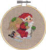 Broderi Nisse m. gavesæk Nature Linen 10/26'' with Mouline yarn' ø10cm.