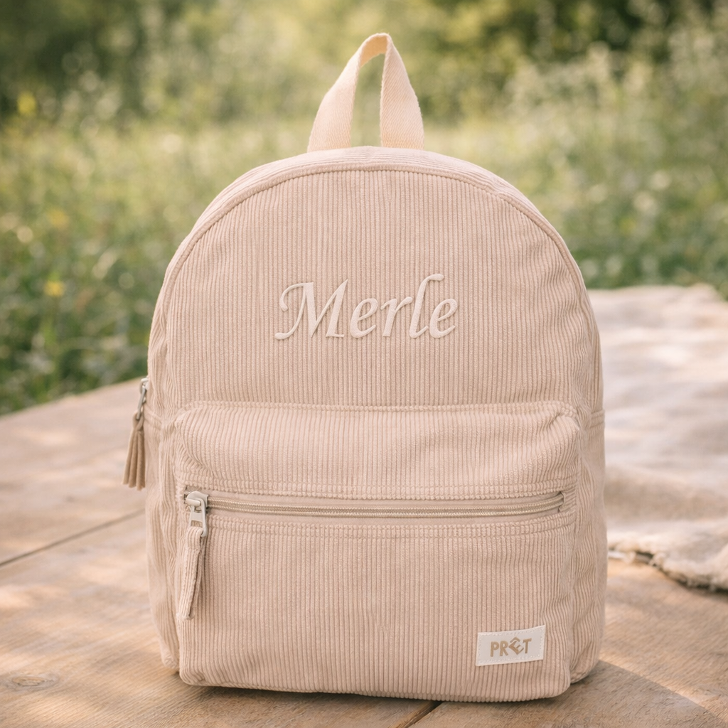 Kidzroom Rygsæk i blød ribstof - Beige - med/uden navn