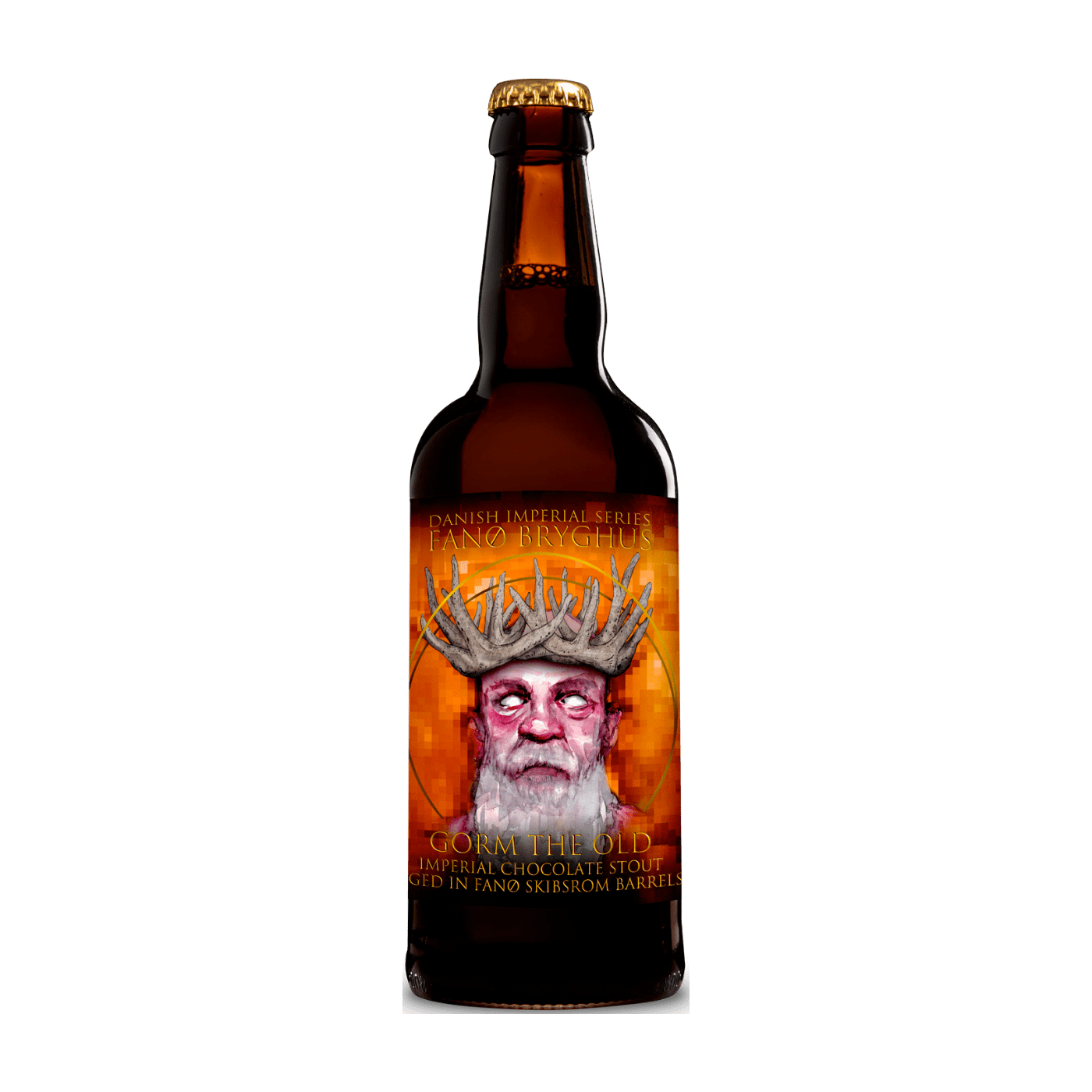 Fanø Gorm the Old – Skibsrom Edition Fanø Gorm the Old – Skibsrom Edition er en del af Fanø Bryghus’ anerkendte Danish Imperials Series, hvor kraftfulde imperialøl hylder prominente skikkelser fra Danmarkshistorien. Denne udgave er dedikeret til Danmarks første konge, Gorm den Gamle – og brygget med samme pondus og tyngde, som hans historiske betydning fortjener. Øllet er en Imperial Chocolate Stout, som efter brygningen er lagret på fade, der tidligere har indeholdt Fanø Skibsrom. Fadlagringen tilfører dybde, varme og en blød afrunding, der smelter elegant sammen med stoutens mørke maltprofil. Smag og karakter I glasset fremstår øllet dybt mørkt og indbydende. Aromaen byder på intens chokolade, egetræ, vanilje og tydelige noter af rom. Smagen er kraftig, men balanceret, med fyldig chokolade, kakaonibs, let røg, vanilje og en afrundet sødme fra mælkesukkeret. Skibsrom-fadene tilfører en varm, kompleks dybde, der gør øllet både intens og behagelig at n