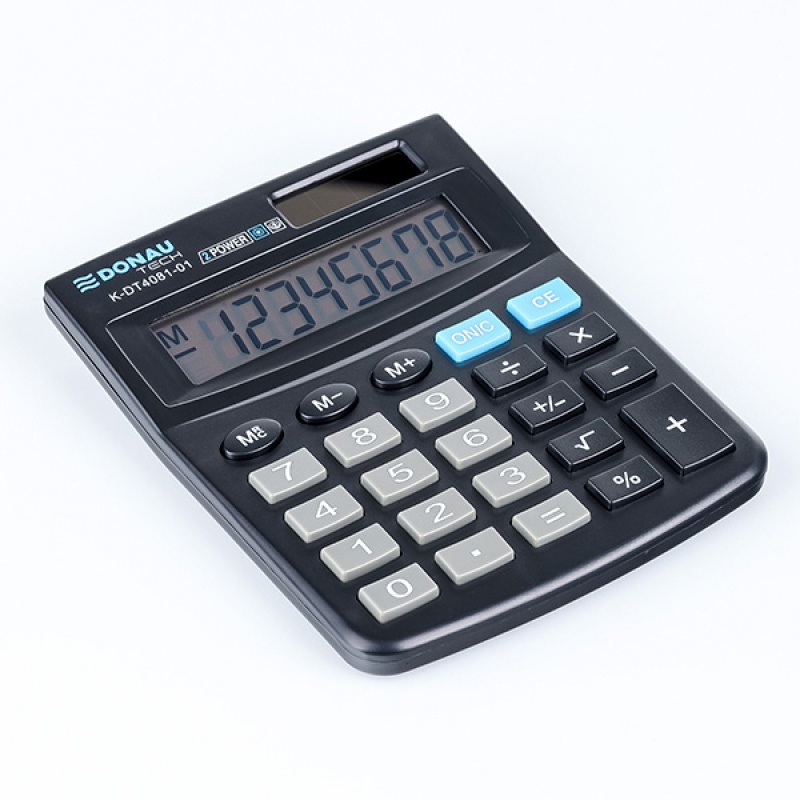 Kontorregner med 8-cifret display, kvadratrod og procentberegning. Kompakt design 130 x 104 x 19 mm. dobbelt strømsystem (solbatteri og batterier), automatisk slukning. Perfekt til både studerende og professionelle. 5 års garanti.