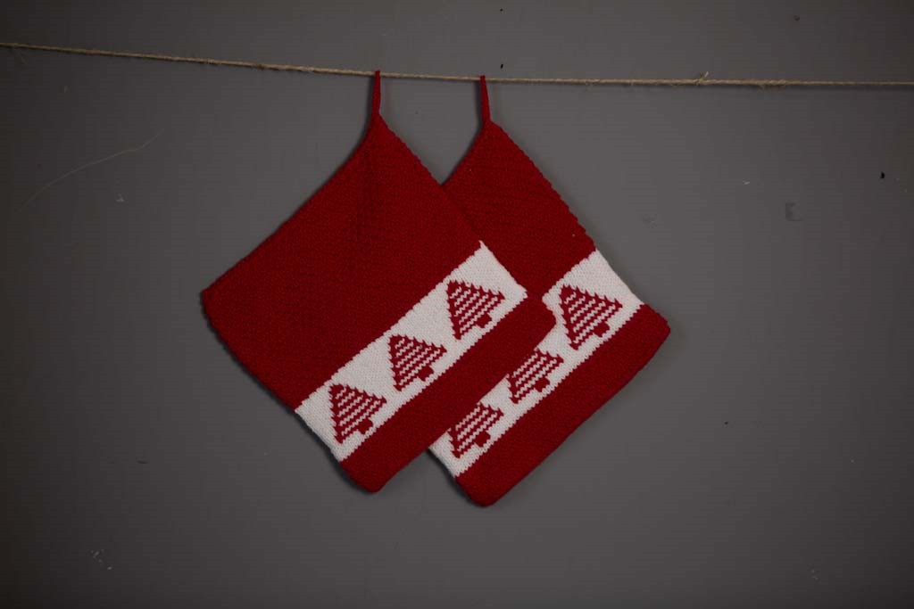 Grydelapper rød juletræ - Viking Design 1715-19 kit - 20cm x 20cm - Viking Bjørk - type Fysisk Opskrift