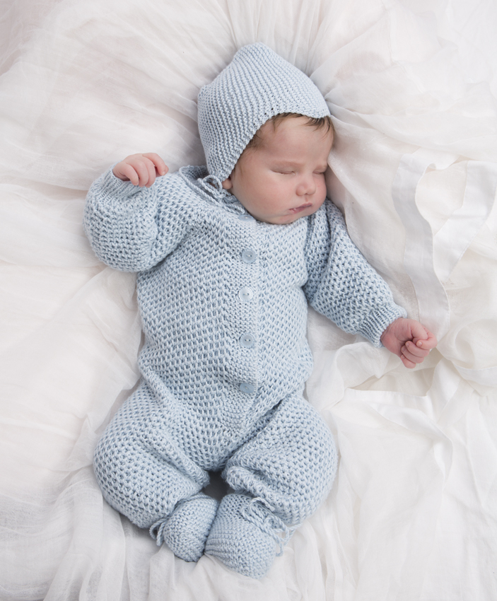 Babysæt, dragt, hue og sokker - Viking Design 1301-20 Kit - 0 - 9mdr - Viking Bjørk - type PDF Opskrift