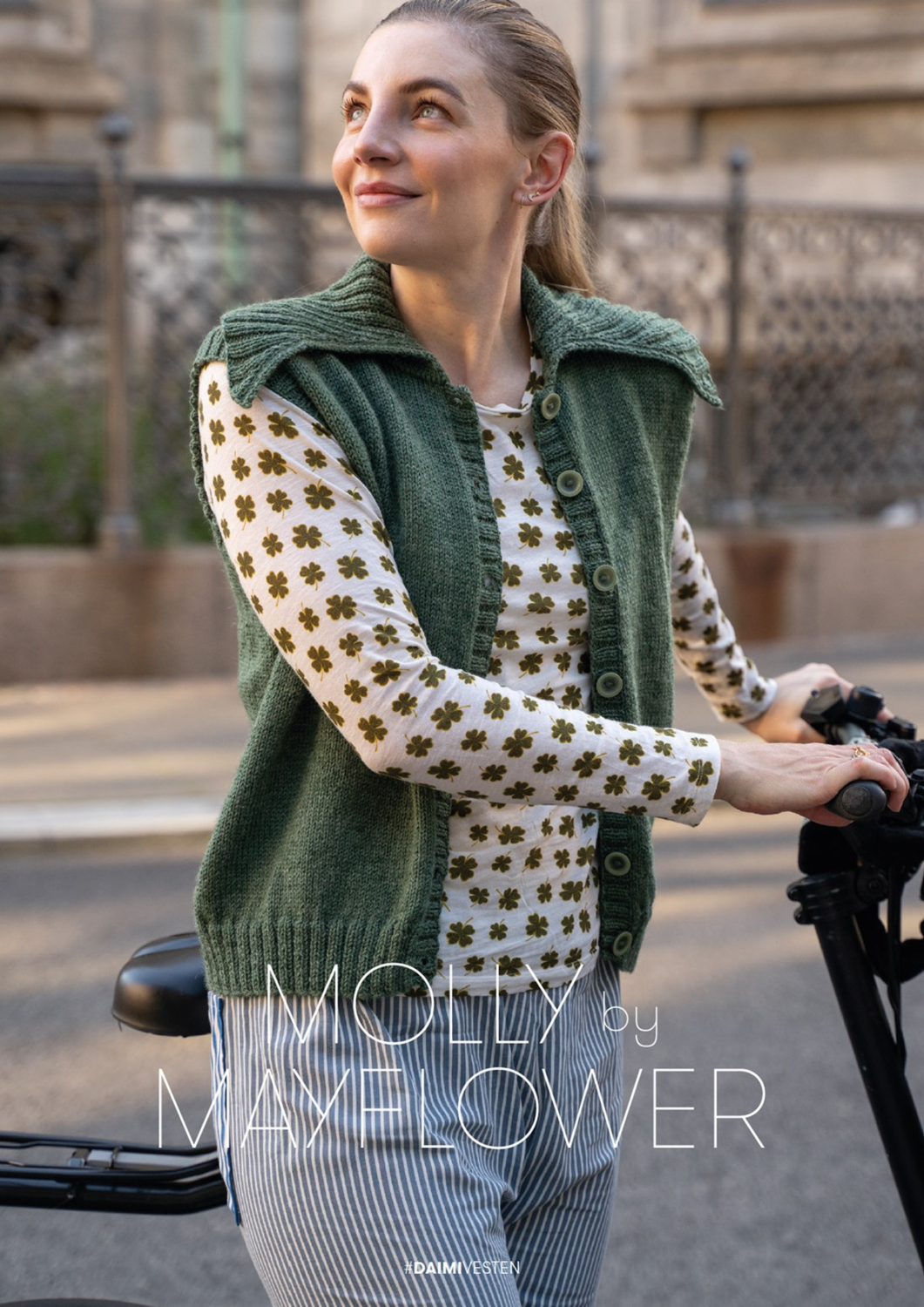 Se tilhørende garn længere nede på siden. Vælg størrelsen og få korrekt mængde garn til opskriften. Vesten er strikket i Mayflower Easy Care Classic, som er 100 % ren uld med en løbelængde på 106 meter pr. 50 gram. Garnvalget gør vesten til et skønt tilvalg til hverdagsgarderoben, for Easy Care Classic kan maskinvaskes og tørretumbles, så det daglige vedligehold er super nemt. Denne vest har en moderne twist med en oversize krave, hvilket er et utraditionelt valg. Mollys personlige stil indebærer ofte en kombination af klassiske designs med nye og moderne tendenser, og hun elsker at tage chancer i sine modevalg. For Molly må mode aldrig blive kedeligt.
