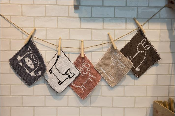 Grydelap, 5 stk. et af hvert motiv, 20cm x 20cm - Viking Design 1705-4 Kit - Viking Bamboo - type PDF Opskrift