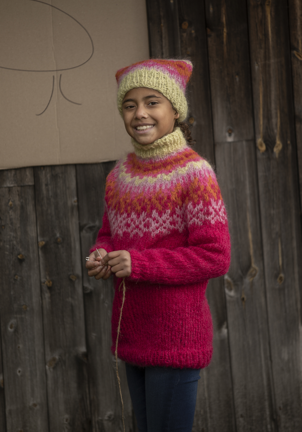 Se tilhørende garn længere nede på siden. Vælg størrelsen og få korrekt mængde garn til opskriften.Kit: StrikkekitDesign: Turid StapnesIndhold: 50% Young goat mohair, 41% Merino uld og 9% PolyamidAnbefalede pinde: Rundpinde og strømpepinde 6 og 7 mmStrikkefasthed (10 cm i bredden): 12m glatstrik på pinde 7 mmStørrelse: 2 - 4 - 6 - 8 - 10 - 12 årHel længde: 39 - 43 - 48 - 53 - 58 - 62 cmOvervidde: 62 - 68 - 73 - 80 - 84 - 90 cmÆrmelængde: 21 - 26 - 29 - 34 - 38 - 41 cmFoto: Studio Hjelm