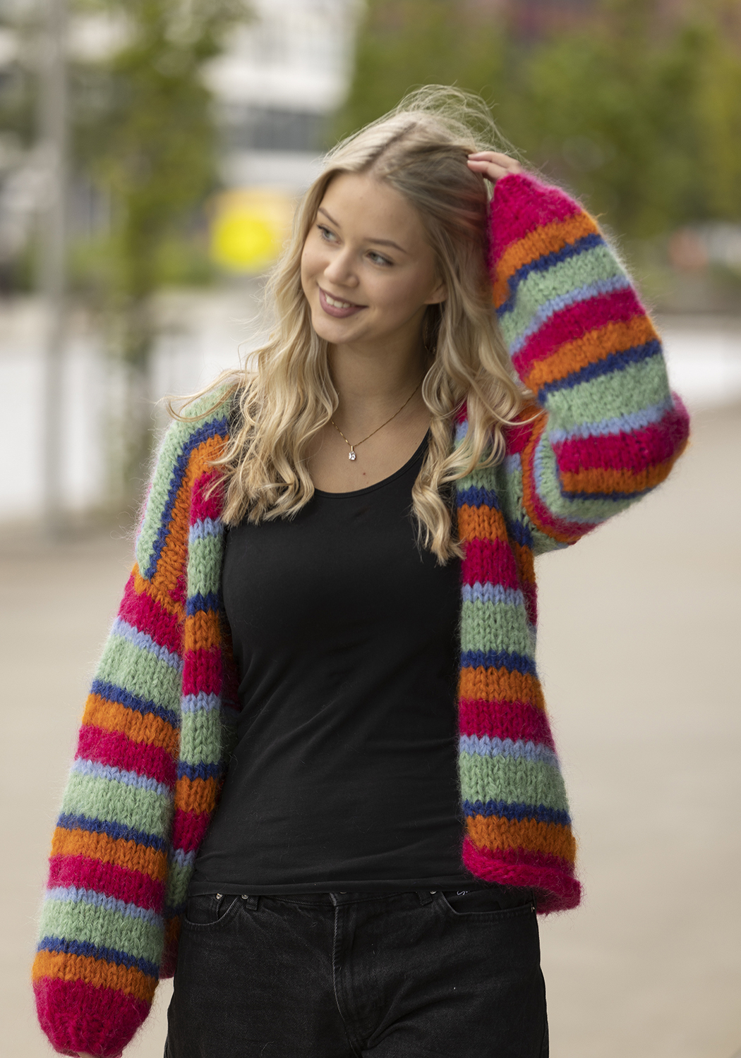 Se tilhørende garn længere nede på siden. Vælg størrelsen og få korrekt mængde garn til opskriften. Modellen er strikket nedefra og op "Nour" Jakke - Viking Design 2335-11 Kit - XS-XXL - Viking Mohrino Kit: StrikkekitDesign: Turid StapnesIndhold: 50% Young goat mohair, 41% Merino uld og 9% PolyamidAnbefalede pinde: 9 og 10 mm, længde af wire afhænger af str du strikkerStrikkefasthed (10 cm i bredden): 9m glatstrik på pinde 10 mmStørrelse: XS - S - M - L - XL -XXLOvervidde: 89 - 98 - 107 - 115 - 124 - 133 cmHel længde: 64 - 65 - 66 - 67 - 68 - 69 cmÆrmelængde: 48 - 49 - 50 - 51 - 52 - 53 cmFoto: Studio Hjelm Viking Mohrino er et skønt tykt lidt langhåret garn som er lækkert blødt. Den har en stabil tråd, så den holder formen i modellerne. Det er go til både børn og voksne. Men ikke til babyer da der er som fimerehår som kan genere dem.