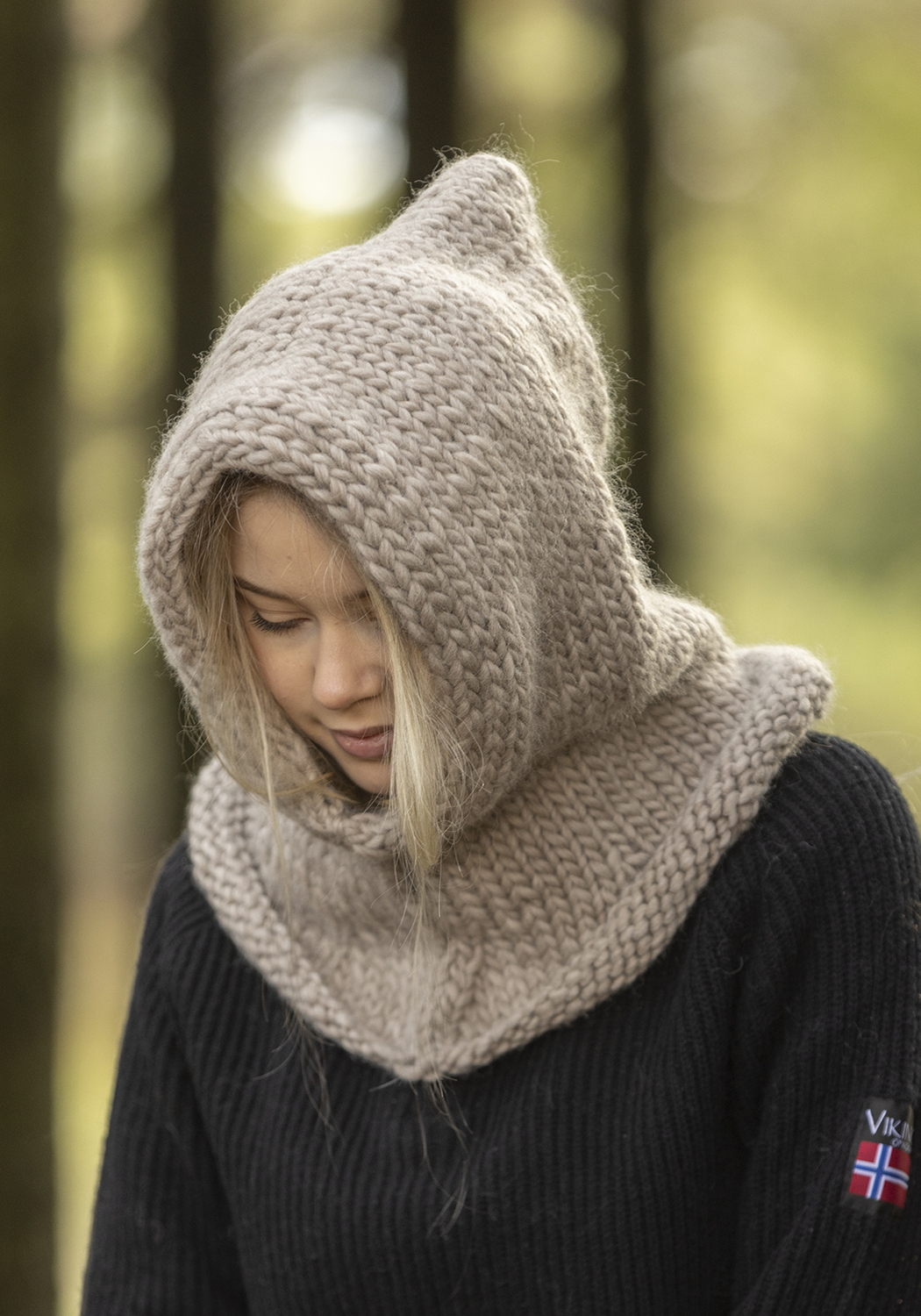 Se tilhørende garn længere nede på siden. Vælg størrelsen og få korrekt mængde garn til opskriften. Modellen er strikket nedefra og op "Marikken" Halshue - Viking Design 2413-13 Kit - S - L - Viking Lovikka Indhold: 100% MerinouldAnbefalede pinde: Rundpind 10 mmStrikkefasthed (10 cm i bredden): 10m glatstrik på pinde 10 mmStørrelse: S - M - LFoto: Studio Hjelm Viking Lovikka, er et lækkert tykt og blødt 100% merino garn. Er perfekt til huer, vanter halstørklæder og tykke modeller Garnet er ikke superwash behandlet, så det skal vaskes skånsom Kommer i flotte natur farve