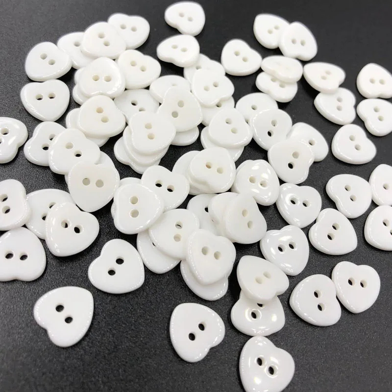 Hvid hjerte plastikknap med 2 huller, 12 mm