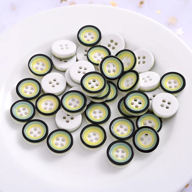 Grøn/Gul/hvid plastikknap med 4 huller, 12 mm