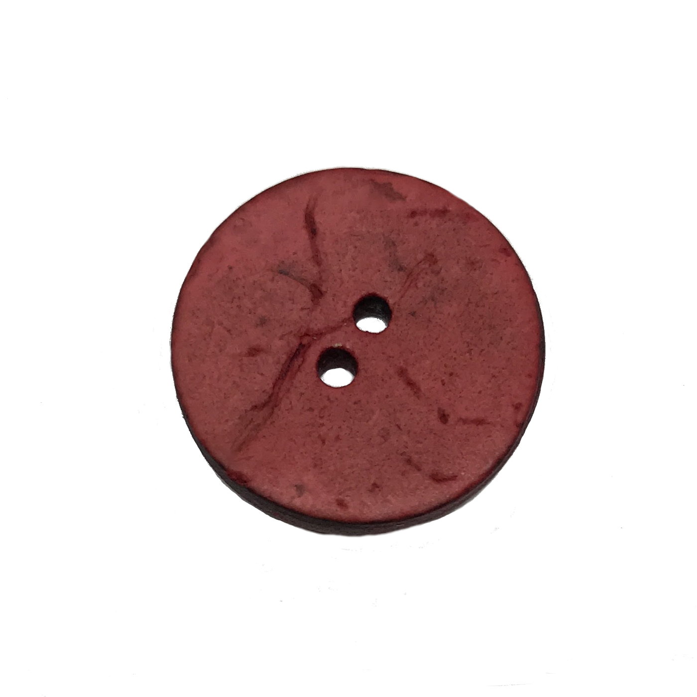 Rød kokosknap til dit næste yndlingsstrik Vi elsker den varme udstråling, en rød kokosknap kan give dit færdige projekt. Skab en lækker kontrast på for eksempel en naturfarvet cardigan, en taske eller et klassisk børnestrik – og lad personligheden skinne igennem med denne 15 mm knap. Materiale: Kokos træ Form: Rund Størrelse: 15 mm Farve: Rød Antal: 1 stk.