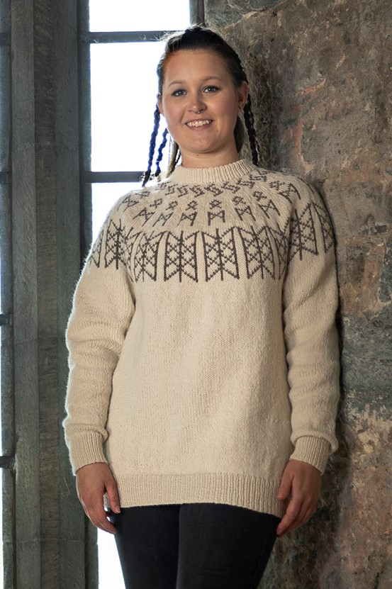 "Skulds Nett" Genser, "Model Verdande" - Viking Design 2127-3B Kit - XS-XXXL - Viking Eco Highland Wool - type Fysisk Opskrift
