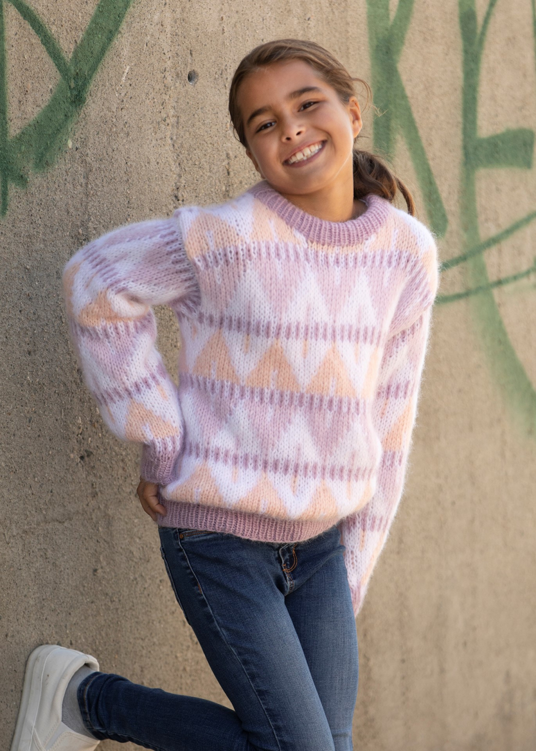 Se tilhørende garn længere nede på siden. Vælg størrelsen og få korrekt mængde garn til opskriften. Denne model strikkes nedefra og op Jazz Genser - Viking Design 2228-8 Kit - 2-14 år - Viking Alpaca Bris Kit: StrikkekitFoto: Studio HjelmDesign: Turid StapnesIndhold: 60% Baby Alpaca, 11% Merino Uld og 29% NylonOvervidde: 64 - 72 - 80 - 88 cmStørrelse: 2/4 - 6/8 - 10 - 12/14 årHel længde: 38 - 47 - 50 - 54 cmÆrmelængde: 30 - 36 - 42 - 46 cmAnbefalede pinde: Rundpinde 5 og 7 mmStrikkefasthed (10 cm i bredden): 15m glatstrik på pinde 6 eller 7 mm Garnkvalitet Viking Alpaca Bris Lækkert blødt og kradsefrit garn Kan bruges til både børne og voksen modeller samt tæpper. Det anbefales IKKE til babyer, da garnet har fine fibre som nemt kan komme i deres øjne og næser. Vi anbefaler håndvask. Eller lav en strikkeprøve og se om det kan tåle din vaskemaskine