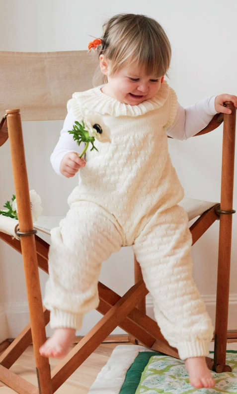 Se tilhørende garn længere nede på siden. Vælg størrelsen og få korrekt mængde garn til opskriften. MATERIALE: lana cotton (50% wool sw Extrafine merino, 50% cotton). STØRRELSER: 0/3 (3/6) 9/12 (18/24) mdr MODELLENS BRYSTVIDDE: 42 (46) 50 (54) cm. HEL LÆNGDE: 55 (63) 71 (79) cm. GARNFORBRUG: 4 (4) 5 (5) ngl g fv 100 TILBEHØR: 2 små knapper (Ø 8-10 mm). PINDE: Nr. 3 og rundp nr. 3 (60 cm). STRIKKEFASTHED: 30 m og 40 p glat = ca. 10x10 cm.Passer strikkefastheden ikke, må der prøves med finere eller grovere pinde.