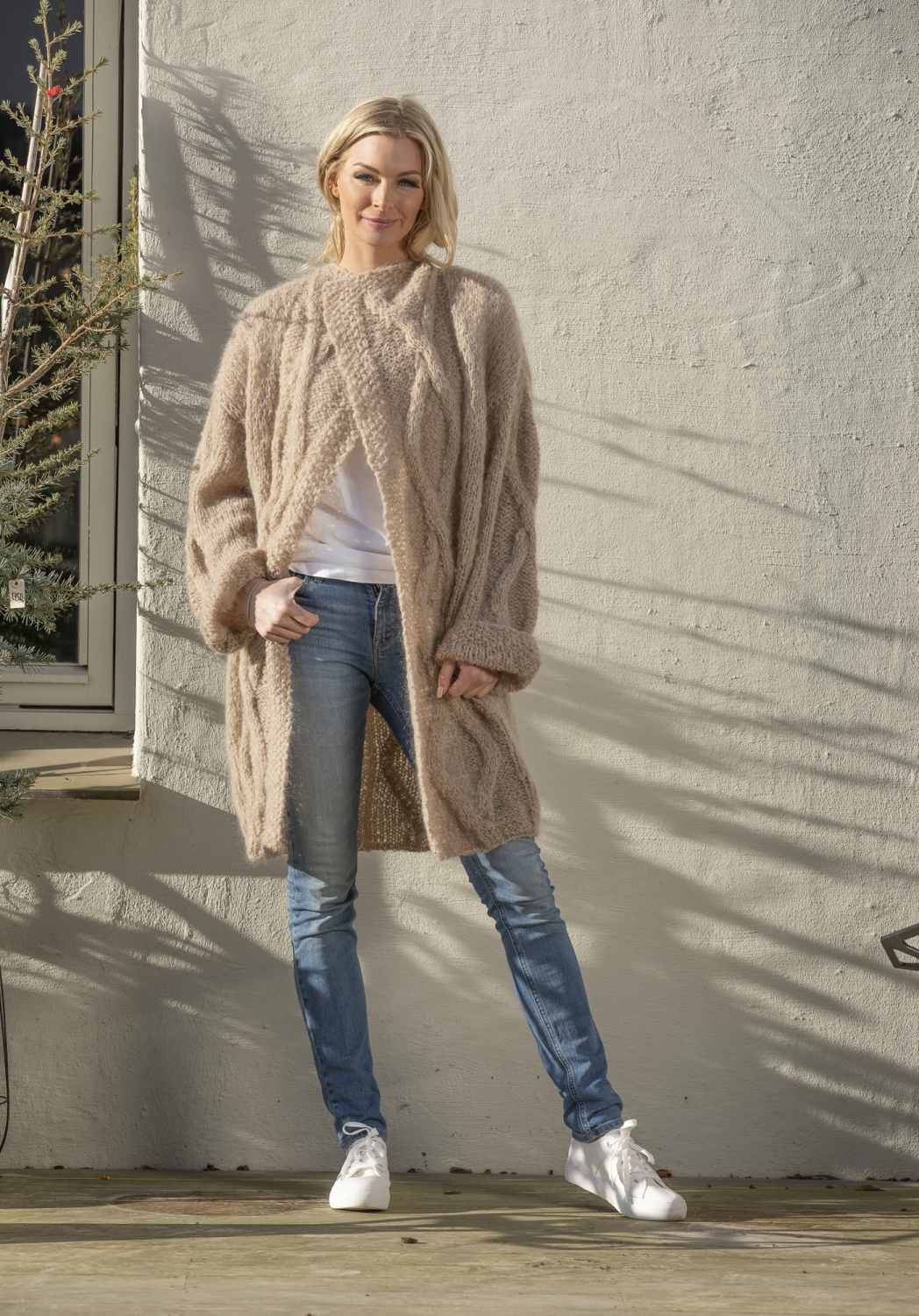 Se tilhørende garn længere nede på siden. Vælg størrelsen og få korrekt mængde garn til opskriften. Kit: StrikkekitDesign: Turid StapnesIndhold: 50% Young goat mohair, 41% Merino uld og 9% PolyamidAnbefalede pinde: 7 mmStrikkefasthed (10 cm i bredden): 12m glatstrik på pinde 7 mmStørrelse: S - M - LHel længde: 80 - 84 - 88 cmOvervidde: 110 - 120 - 130 cmÆrmelængde: 48 - 50 - 51 cmFoto: Studio Hjelm