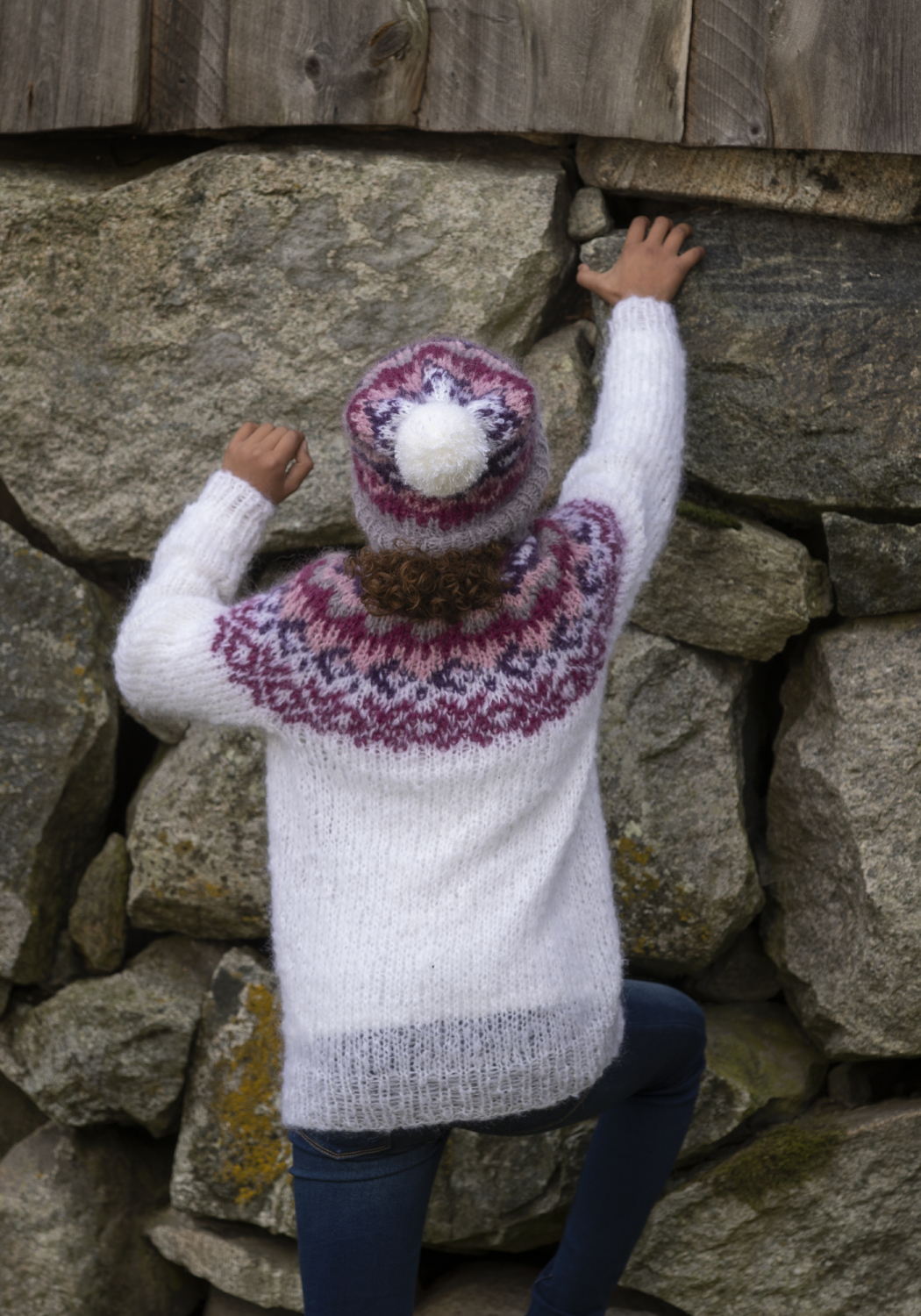 Se tilhørende garn længere nede på siden. Vælg størrelsen og få korrekt mængde garn til opskriften.Kit: StrikkekitDesign: Turid StapnesIndhold: 50% Young goat mohair, 41% Merino uld og 9% PolyamidAnbefalede pinde: Rundpinde og strømpepinde 6 og 7 mmStrikkefasthed (10 cm i bredden): 12m glatstrik på pinde 7 mmStørrelse: 2 - 4 - 6 - 8 - 10 - 12 årHel længde: 39 - 43 - 48 - 53 - 58 - 62 cmOvervidde: 62 - 68 - 73 - 80 - 84 - 90 cmÆrmelængde: 21 - 26 - 29 - 34 - 38 - 41 cmFoto: Studio Hjelm