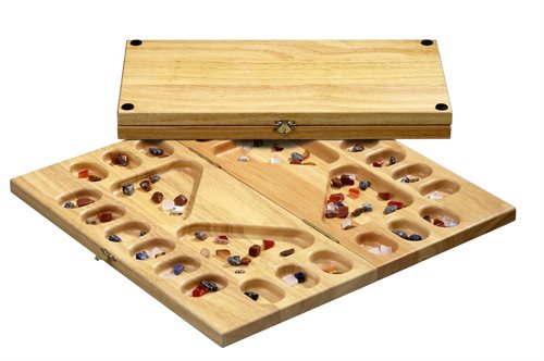 Det klassiske spil Kalaha udført i Heveatræ.
