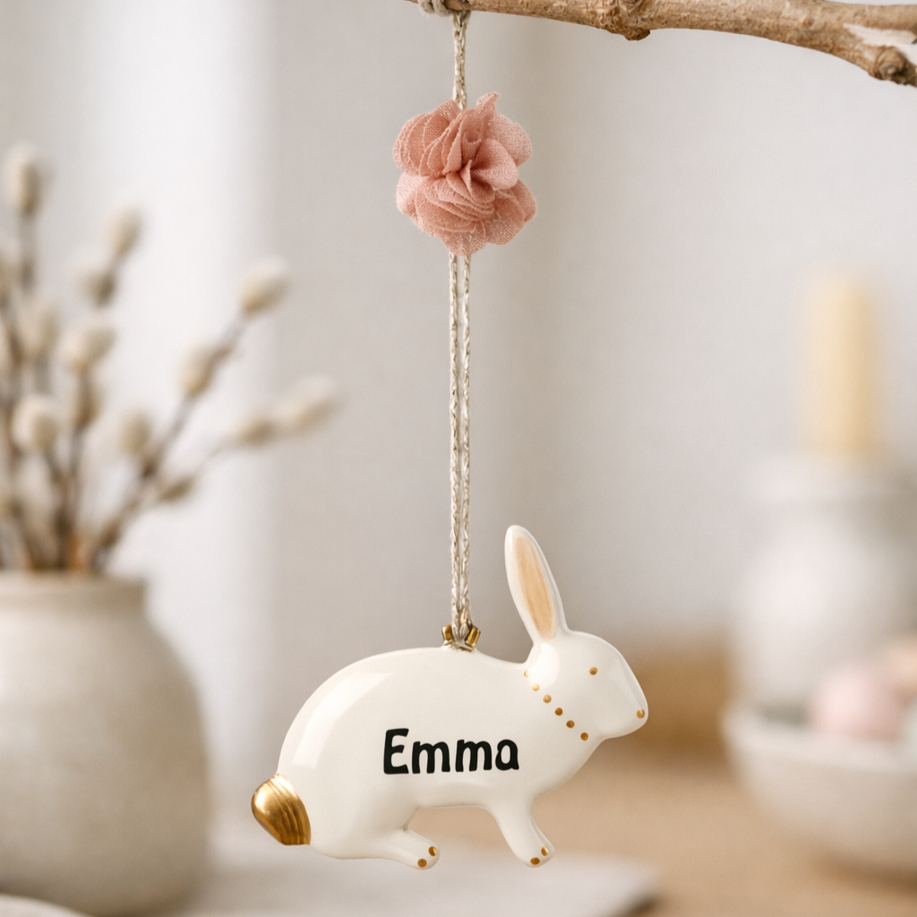 Sød påskehare fra Maileg. Skab påskehygge i dit hjem med metalornamenter. Hæng dem på en gren eller i vinduet og sammensæt dem med andre påskeornamenter fra Maileg-kollektionen for at fuldende atmosfæren. Højde: 7 cm Bredde: 7,5 cm Materiale: Metal Vask: Overflade vask Bemærk at der kan være små uregelmæssigheder i overfladen. Ved tilkøb af navn, sættes det på med folie.