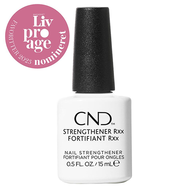 Stærkere negle på kun 14 dage! Sig farvel til svage og beskadigede negle på bare 14 dage! CND™ Strengthener RXx, en innovativ neglebehandling designet til at reparere og styrke svage og beskadigede negle uden formaldehyd. Denne innovative formel kombinerer kraftfulde ingredienser som sellerifrøekstrakt og Tsubaki-olie for at styrke dine naturlige negle, forbedre tykkelsen og udglatte overfladen af den naturlige negl. Den blide og hurtigtørrende formel skaber en beskyttende barriere, der hjælper med at reparere og fremme naturneglens vækst, hvilket resulterer i synligt stærkere negle og en glattere overflade på bare 14 dage*. Det, der adskiller CND™ Strengthener RXx, er den innovative formulering uden sundhedsskadelige ingredienser som formaldehyd, samt den åndbare, veganske formel, der tillader ilt og vand at trænge ind i neglene, hvilket sikrer neglenes generelle sundhed under og efter behandlingen. CND™ Strengthener RXx er en premium-behandling, der giver effektiv pleje uden kompromiser og er velegnet til både hjemmebrug og professionelle i neglesaloner. Genskab dine negles styrke og naturlige, smukke look med den nærende kraft fra CND™ Strengthener RXx. Sådan anvendes CND Rxx Strengthener: OBS! Ryst produktet i 30 sekunder inden påføring. Dag 1: Påfør to lag på afrensende naturnegle. I salonen renses neglen med ScrubFresh™ før Strengthener RXx påføres. Dag 2-3: Påfør et lag dagligt Dag 4: Aftag produktet og start forfra. *Klinisk test, der viser, at 97% af deltagerne oplevede, at deres negle var stærkere efter 14 dage (Panel med 34 personer).