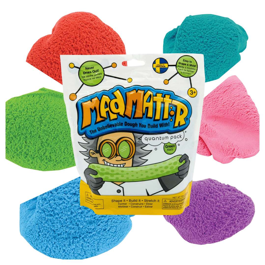 Mad Mattr Quantum Pack – kreativ leg uden grænser! 🎨✨ Stræk det, byg det, form det – og se det flyde! Med Mad Mattr Quantum Pack får du den ultimative modellermasse, der aldrig tørrer ud og kan bruges igen og igen. Den bløde og elastiske tekstur gør den perfekt til både kreativ leg og sensorisk stimulering, og den er lige så sjov for voksne som for børn! 👐 Hvorfor vælge Mad Mattr Quantum Pack? ✔ Tørrer aldrig ud – leg igen og igen!✔ Superblød og formbar – perfekt til små hænder✔ Nem at rydde op – smuldrer ikke og klistrer ikke✔ Sansestimulerende – ideel for børn med sensoriske behov✔ Gluten-, casein- og hvedefri – sikkert for børn med allergi✔ Leveres i en genlukkelig pose – let at opbevare Mad Mattr Quantum Pack fås i 6 flotte farver, som kan mixes for at skabe endnu mere sjov! 📦 Hvad får du? 1 x 272 g Mad Mattr modellermasse Genlukkelig pose til nem opbevaring Produceret i Sverige – høj kvalitet og sikkerhed 🧑🎨 Perfekt til:✅ Kreativ leg og byggeri✅ Sansestimulering og afslapning✅ Skoler, institutioner og hjemmet✅ Børn fra 3 år og op Slip fantasien løs med Mad Mattr Quantum Pack – køb din favoritfarve i dag hos Vicca.dk! 🚀