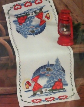 Juleløber, nisse trækker med kælk, 35 x 88cm, stof aida hvid 5,4 tern pr. cm.