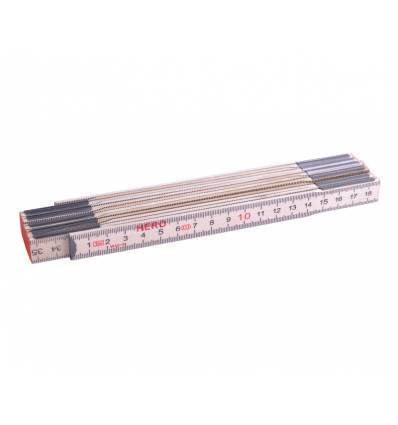 En helt klassisk tommestok i træ med 12 led og en længde på 2 meter. Næsten neutralt design med et mindre "Hero" logo på første led. OBS - 10 % rabat ved køb af 10 eller flere stk. En god billig model i en forbløffende god kvalitet. Egentlig burde dens navn være "meterstok" eftersom der kun måles i mm/cm/m, men navnet tommestok hænger jo ved fra gamle dage, hvor det var mere almindeligt at måle i tommer. 12 led Længde: 2 meter Måleenhed: mm/cm I træ