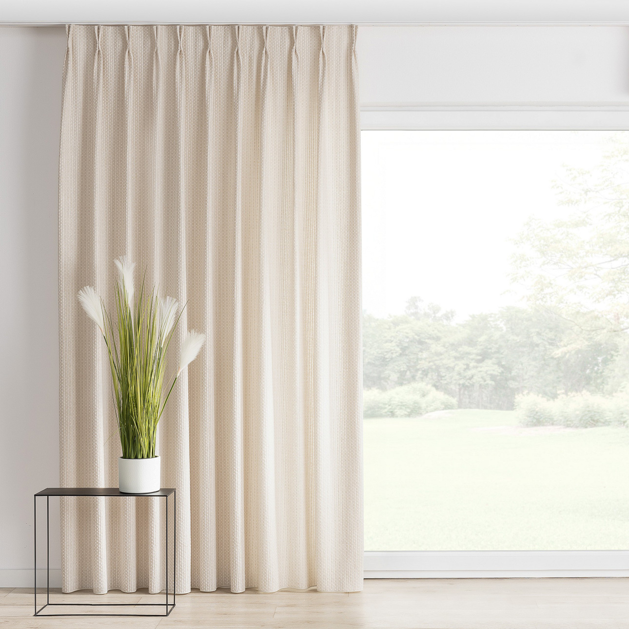 Gardin med dobbel fast læg ✔ Skræddersyet - klar til montering hos dig✔ Direkte fra systuen - uden fordyrende mellemled✔ Perfekt fald - med indsyet tyngdebånd og ekstra tyngde i hjørner ved søm✔ Kvalitetstekstiler – hovedsaglig fra Portugal✔ EU produceret - vores egen systue Gardin med dobbel fast læg er beregnet til montering i en gardinskinne og skaber jævne, ca. 7 cm dybe bølger, hvilket giver et stilrent og elegant udtryk. Velegnet til store vinduespartier, hvor gardinet nemt skal kunne trækkes til og fra. Bølger og montering Gardinet er sammensyet med læg og har kroge indsat med intervaller på ca.13 cm, der gør at folderne aldrig hives flade. Opmåling ved 2 stk pr. vindue Bredde: Mål fra midten af gardinskinnen til skinnens yderkant. Rund altid op til nærmeste cm, der kan deles med 10 cm. Højde: Mål fra 1 cm under bunden af skinnen og ned. Husk, at gardinskinnen altid vil være synlig – det er en forudsætning for, at systemet fungerer korrekt. Tolerancer Størrelsen vil altid have en tolerance på +/- 5 cm i bredden og +/- 2 cm i længden. Stoffets bredde og sammensyning Ved bestilling af f.eks. bredde 130 cm vil stoffet være bredere og vil dække 130cm når det er trukket for - modsat andre gardintyper, der først skal rynkes og dermed formindskes dækkefladen fra feks 130 cm til 65 cm. Ved bestilling af gardin i bredde 130cm, hvor stofbanen er 140 cm, vil 2 stofbaner blive syet sammen. Se stofbredde under Valgt stof. Ved mønstrede tekstiler tilpasses mønsterrapporten Mønsterets placering Mønsterets størrelse og højdetilpasning på billedet er vejledende. Gardiner fremstillet af mønstrede tekstiler vil ikke altid have præcis samme mønsterplacering. Afslutning og tyngdebånd Gardiner afsluttes forneden med bundsøm og indsyede tyngde. Dog er der ikke tyngde i kollektionen Velvet. Følgende kollektioner afsluttes alene med tyngdebånd som skaber de mest jævne folder: Alara Premium Vintage (145-17, 139-01, 139-02) Dimout 300 cm Blackout Soft Blackout Double Blackout FR Premium Balance Crema Imperia Premium Quadro (143-90, 143-91, 143-92, 143-93, 144-99) Romantica (128-77, 128-88, 142-90, 181-15, 174-93, 184-41, 128-09, 128-10, 181-16, 181-17) Sensuale Premium Scotti Delicate Premium Harmony Intenso Premium 144-15 Edinburgh 144-95 Vibes Natural Touch Secret Garden (145-06, 145-07) Ved lange gardiner kan du med fordel bruge denne gardin-fører stang