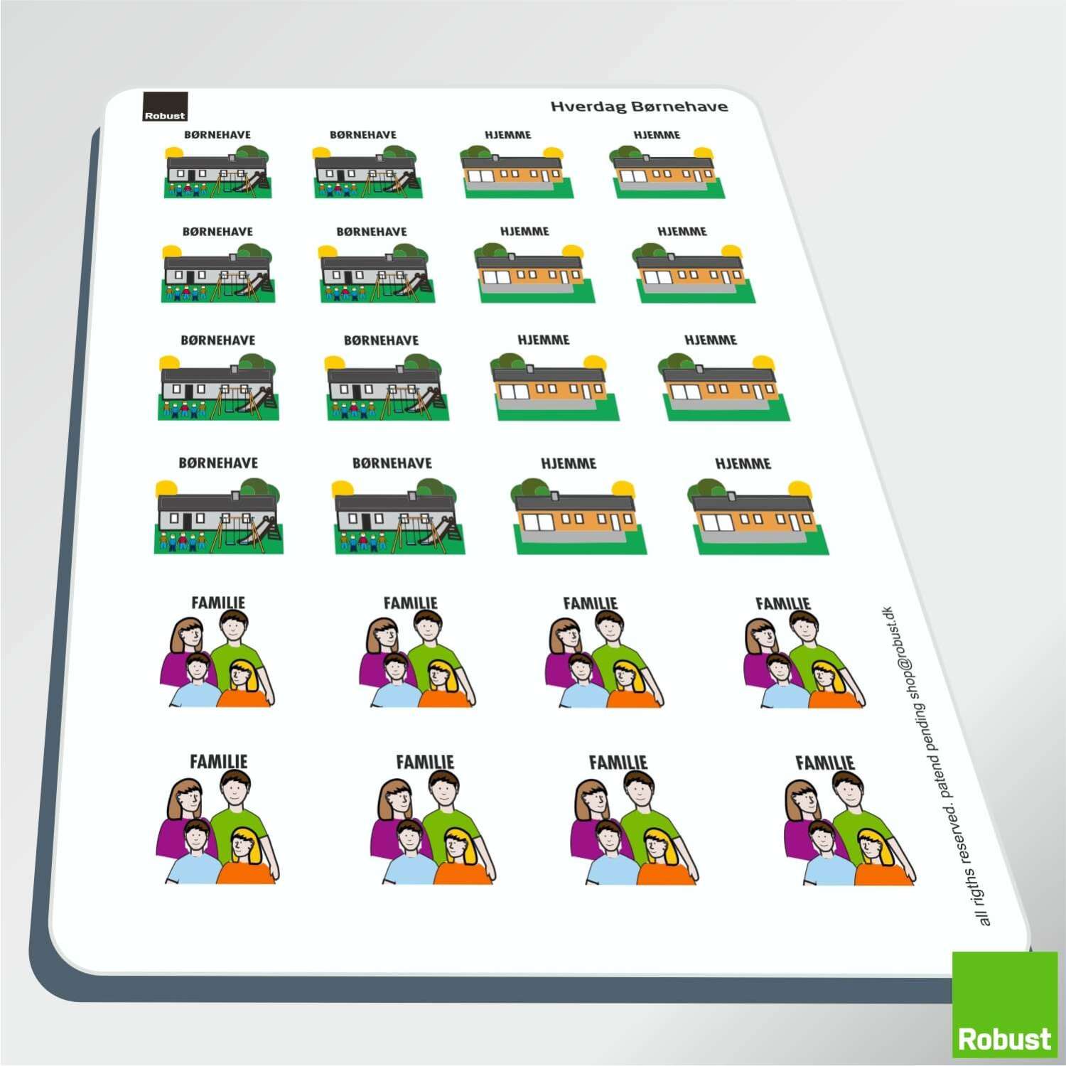 Piktogram ark fra Robust hjælper med at forbedre hverdagen, ved hjælp af planlægning med visuelle billeder. Visuel planlægning skaber ro og nedsætter muligheden for nedsmeltninger i løbet af dagen. Med piktogrammer skabes der: Overblik Struktur Ro Overskud Piktogrammerne er lette at gå i gang med, da de er udskåret på forhånd, så de er lige til at trykke ud fra arket. Bagpå piktogrammerne er der påsat velcro. Brug piktogrammerne sammen med Robust ugeplan, som ses her. Med en ugeplan kan der planlægges dag for dag eller hele ugen. Har man brug for transportabel planlægning kan man bruge en Robust ugeplan to go, se den her. Med ugeplan to go kan man have sin planlægning med, lige meget hvor man er, den er også perfekt hvis man skal på ferie. De piktogrammer som ikke er i brug, kan opbevares i en Robust Piktogram bog, som du finder her. På den måde har man altid sine piktogrammer lige ved hånden. Piktogrammerne er lavet i høj kvalitets plastmateriale, der er ekstra slidstærke og kan holde til at blive brugt. Alle piktogrammer tåler rengøring med sæbevand, samt tåler også at blive brugt i brusebadet. Indeholder: 24 piktogrammer med påsat velcro Mål: 2,5 cm x 2,5 cm Produkterne fra Robust Visual er alle godkendt som hjælpemidler i HMI-basen.dk. HMI-nr 11915