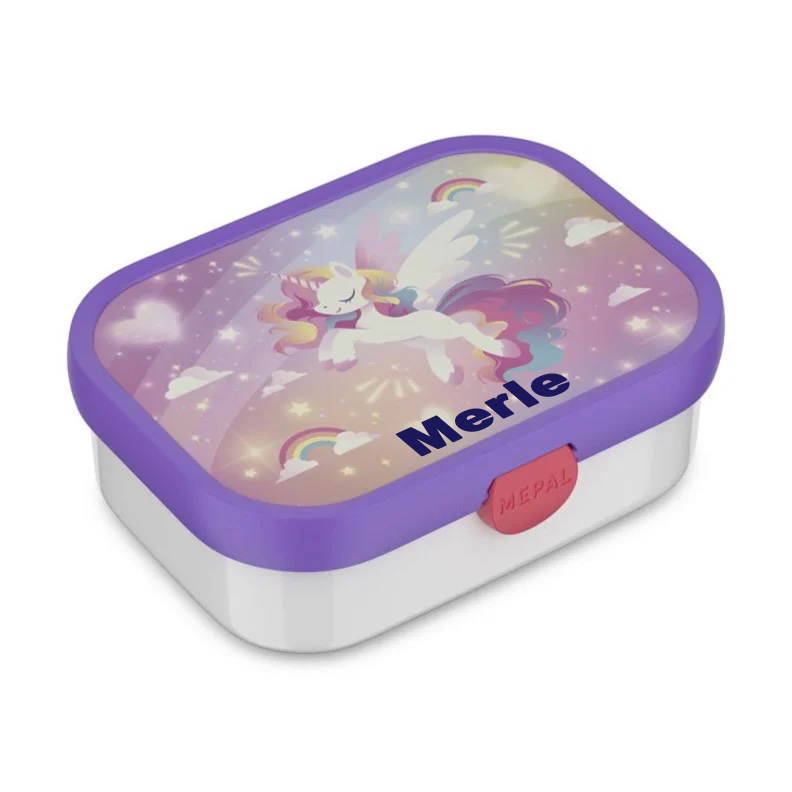 Gør madpakken ekstra sjov med denne Mepal madkasse med enhjørning, som vi gør personlig med barnets navn. Navnet placeres på låget dér, hvor det passer bedst til motivet.Madkassen har Mepals forbedrede lukkemekanisme, så børn nemt selv kan åbne og lukke den.Indeholder lille gaffel samt aftagelig indsats med mindre rum.Kort om madkassen:- Robust og slagfast ABS-plast- BPA-fri og godkendt efter EU-standarder- Mål: ca. 17,5 × 13 × 6 cm- Tåler opvaskemaskine (håndvask af låg anbefales ved navn)⚠️ Navn påsættes gratis – der gives derfor ingen garanti på trykkets holdbarhed.Må ikke bruges i mikroovn eller fryser.