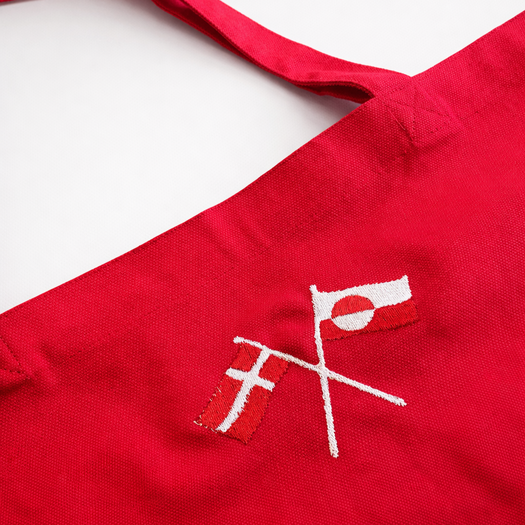 Mulepose i økologisk bomuld – Vi står sammen om Grønland. Denne mulepose er fremstillet i økologisk genbrugs bomuld og broderet med det grønlandske og det danske flag – et stærkt symbol på fællesskab og sammenhold. Muleposen er kraftig og rummelig med lange håndtag, så den er behagelig at bære over skulderen. Perfekt til hverdag, indkøb eller som en meningsfuld gave. Kort om muleposen: Recycled økologisk bomuld Farve: Rød Kraftig kvalitet (310 g/m²) Lange håndtag (ca. 60 cm) Mål: 38 x 42 cm Robust og holdbar – skabt til daglig brug Flagene er broderet på tasken En enkel mulepose med et klart budskab: Vi står sammen om Grønland.