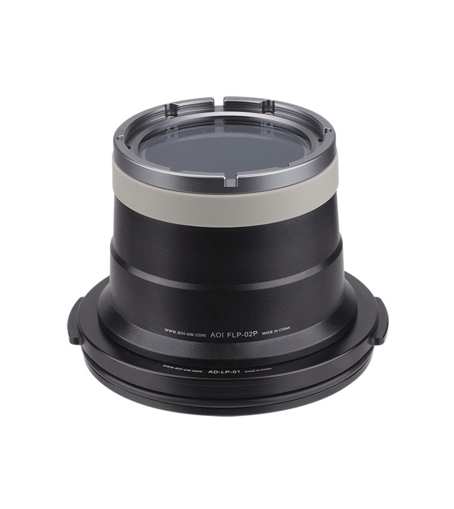 The AOI FLP-03P is the FLP-02 port combined with the AD-LP-01 adapter, designed for OM-D mount housings. It delivers exceptional optical clarity, rugged durability, and waterproof performance up to 60 meters—ideal for macro photography underwater.