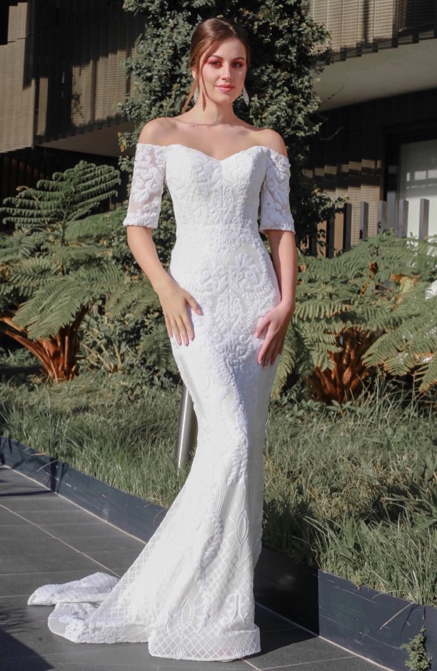 Tina Holly Couture brudekjole T19005 med �rmer Kategori: Forhandlere Lagerstatus Pris Weddingdeluxe (bridalstore) in_stock DKK 4.349,00 Besøg